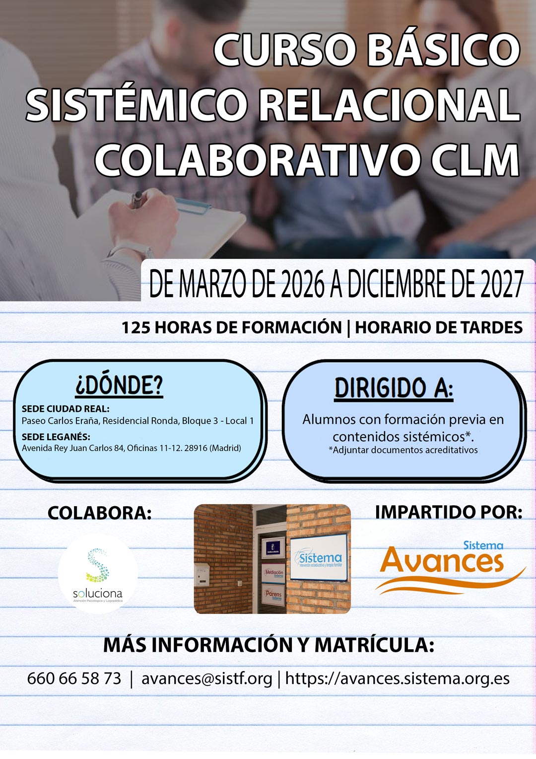- «Avances» Formación en Terapia Familiar Sistémica (Programa formativo acreditado por la Federación Española de Asociaciones de Terapia Familiar FEATF).